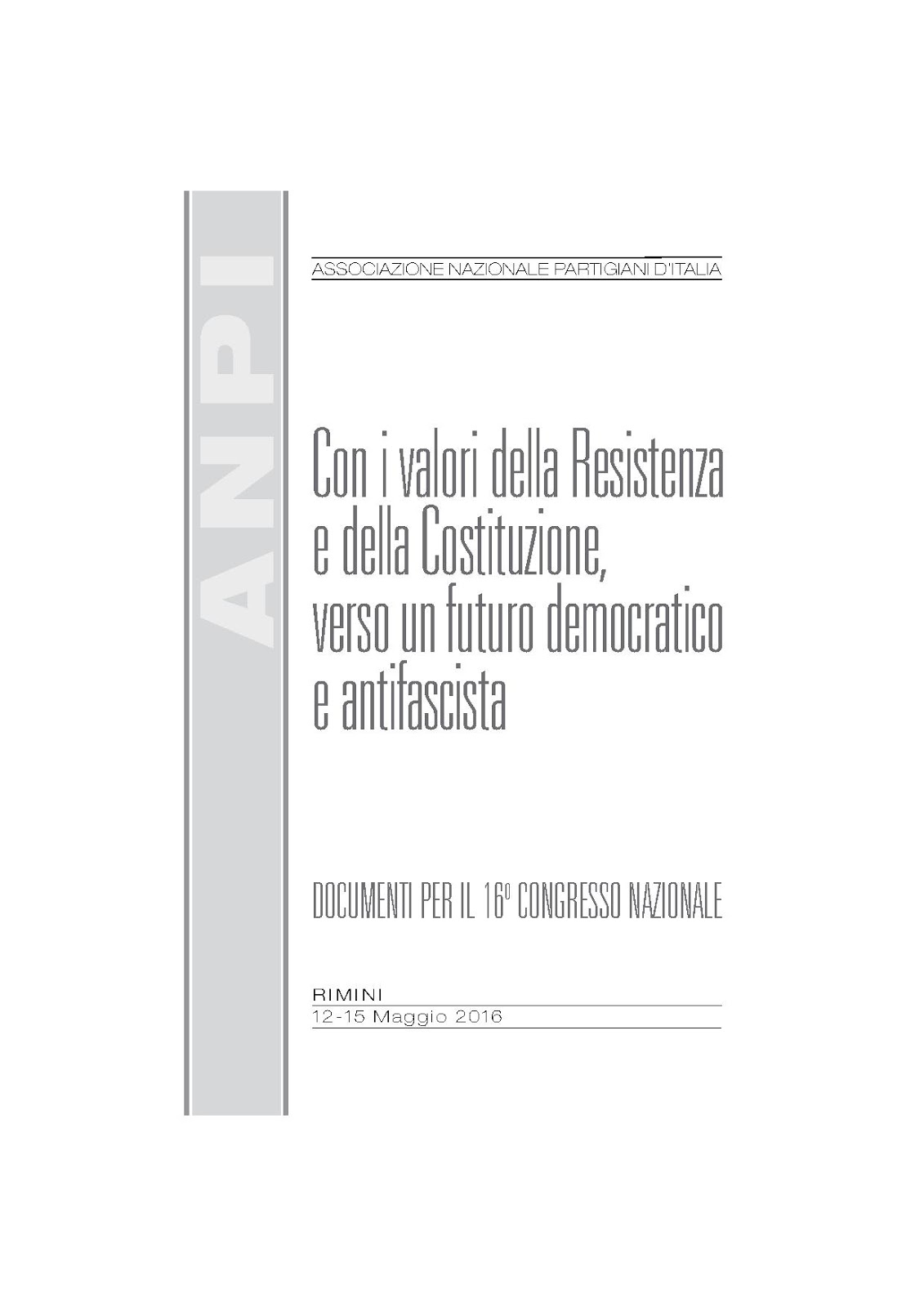 Con i valori della Resistenza e della Costituzione, verso un futuro democratico e antifascista. Documenti per il 16° Congresso Nazionale A.N.P.I.