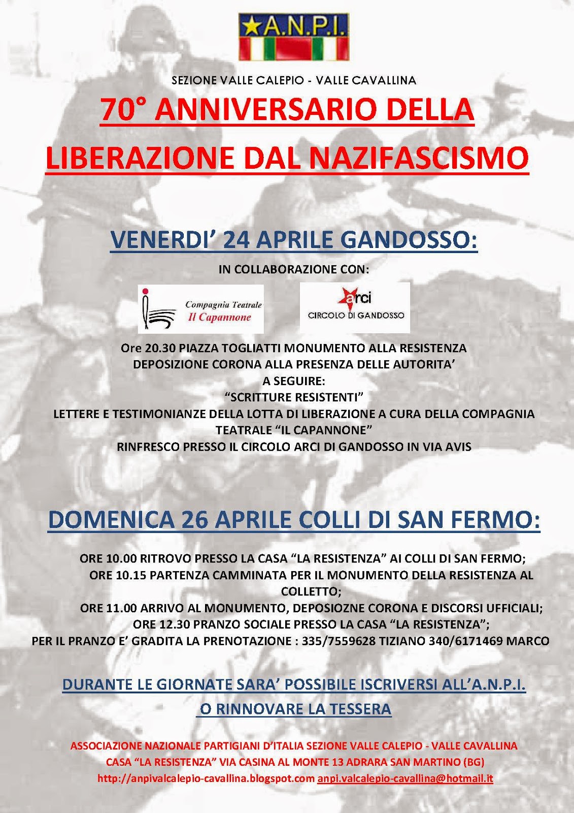 PROGRAMMA MANIFESTAZIONI 70° ANNIVERSARIO DELLA LIBERAZIONE DAL NAZIFASCISMO